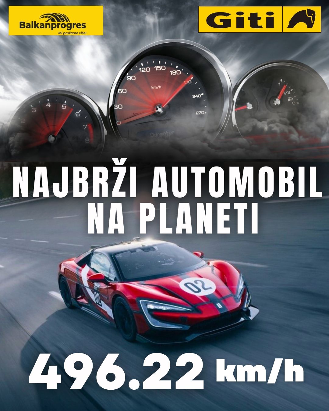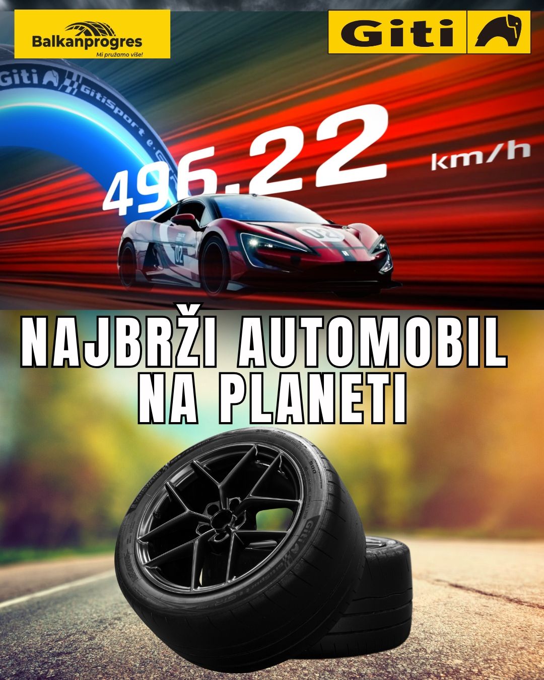Rekord od skoro 500 km/h nije samo sportska vest. To je dokaz da GITI gume kombinuju tehnologiju, sigurnost i dugovečnost - a sada su dostupne i kod nas.